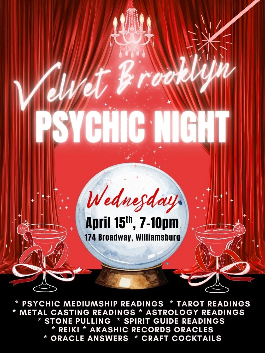 Wednesday 4/15 7-10pm - Psychic Night at Velvet Brooklyn